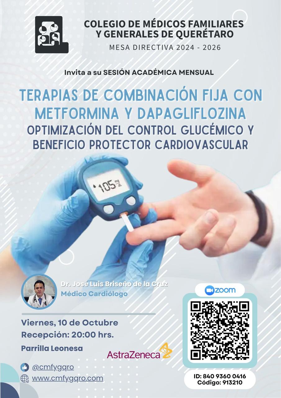 Sesión Mensual: TERAPIAS DE COMBINACIÓN FIJA CON METFORMINA Y DAPAGLIFLOZINA OPTIMIZACIÓN DEL CONTROL GLUCÉMICO Y BENEFICIO PROTECTOR CARDIOVASCULAR